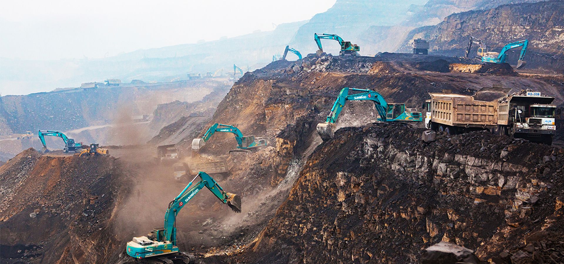 Sejumlah besar truk dan ekskavator tambang Sunward beroperasi di sebuah proyek pertambangan di Indonesia. Klien telah resmi menandatangani perjanjian kerja sama strategis dengan tujuan membeli 600 unit/set peralatan tambang Sunward, termasuk ekskavator, stasiun penghancur, dan truk tambang.